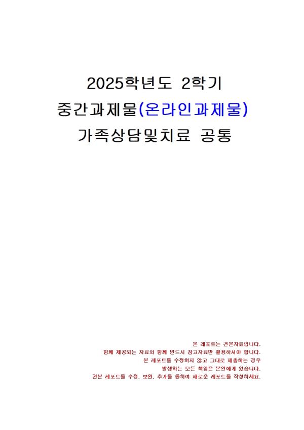 | 2025³â 2Çб⠰¡Á·»ó´ã¹×Ä¡·á Áß°£½ÃÇè°úÁ¦¹° °øÅë(Àü·«Àû °¡Á·Ä¡·á ÀÌ·ÐÀÇ ±âº» ¿ø¸®) |