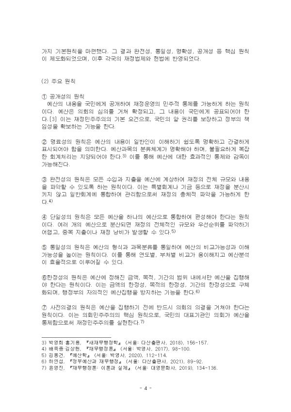 ¿¹»êÀº ±¹°¡ ¶Ç´Â Áö¹æÀÚÄ¡´Üü°¡ ÀÏÁ¤ ±â°£ µ¿¾ÈÀÇ ¼öÀÔ°ú ÁöÃâ¿¡ °üÇÑ °èȹÀ» ¼öÄ¡·Î Ç¥ÇöÇÑ °ÍÀ¸·Î, Çö´ë ÇàÁ¤¿¡¼ °¡Àå Áß¿äÇÑ Á¤Ã¥¼ö´Ü Áß ÇϳªÀÌ´Ù. ¿¹»êÀº ´Ü¼øÈ÷ ÀçÁ¤ÀÇ ¼öÀÔ°ú ÁöÃâÀ» ³ªÅ¸³»´Â ȸ°èÀû ¹®¼¸¦ ³Ñ¾î¼, Á¤ºÎÀÇ Á¤Ã¥ ¿ì¼±¼øÀ§¸¦ ¹Ý¿µÇÏ°í ±¹°¡ ÀÚ¿øÀ» ¹èºÐÇÏ´Â ÇÙ½ÉÀûÀÎ Á¤Ä¡¡¤ÇàÁ¤Àû µµ±¸·Î ±â´ÉÇÑ´Ù. ¿¹»êÀÇ Æí¼º°ú ÁýÇà °úÁ¤¿¡¼ ÁؼöÇØ¾ß ÇÒ ±âº»ÀûÀÎ ÁöħÀÌ ¹Ù·Î ¿¹»ê¿øÄ¢ÀÌ´Ù. ¿¹»ê¿øÄ¢Àº ¿ª»çÀûÀ¸·Î ±¹°¡ÀçÁ¤ÀÇ Åõ¸í¼º°ú È¿À²¼ºÀ» È®º¸Çϱâ À§ÇØ ¹ßÀüÇØ ¿ÔÀ¸¸ç, ½Ã´ëÀû ¿ä±¸¿Í ÇàÁ¤È¯°æÀÇ º¯È¿¡ µû¶ó Áö¼ÓÀûÀ¸·Î ÁøÈÇØ ¿Ô´Ù. ÀüÅëÀû ¿¹»ê¿øÄ¢ÀÌ ÀçÁ¤¹ÎÁÖÁÖÀÇ¿Í ÅëÁ¦¸¦ °Á¶Çß´Ù¸é, Çö´ëÀû ¿¹»ê¿øÄ¢Àº ¼º°ú¿Í È¿À²¼º, ±×¸®°í ÀçÁ¤ÀÇ Áö¼Ó°¡´É¼ºÀ» Áß½ÃÇÏ´Â ¹æÇâÀ¸·Î º¯ÈÇϰí ÀÖ´Ù. ÇÑÆí, ¿¹»êÀ» ¾î¶»°Ô °áÁ¤ÇÒ °ÍÀΰ¡ÀÇ ¹®Á¦´Â ¿¹»êÀÌ·ÐÀÇ ÇÙ½ÉÀûÀÎ ÁÖÁ¦ÀÌ´Ù. ¿¹»ê°áÁ¤ÀÌ·ÐÀº Å©°Ô ÇÕ¸®¸ðÇü°ú Á¡Áõ¸ðÇüÀ¸·Î ´ëº°µÇ¸ç, °¢°¢Àº ¼·Î ´Ù¸¥ ¿¹»ê°áÁ¤¹æ½Ä°ú ¿¹»êÁ¦µµ¸¦ ź»ý½ÃÄ×´Ù. ÇÕ¸®¸ðÇüÀº ºÐ¼®°ú °èȹÀ» ÅëÇÑ ÃÖÀûÀÇ ÀÇ»ç°áÁ¤À» Ãß±¸ÇÏ´Â ¹Ý¸é, Á¡Áõ¸ðÇüÀº Çö½ÇÀû Á¦¾àÀ» ÀÎÁ¤Çϰí Á¡ÁøÀû Á¶Á¤À» ÅëÇÑ ¿¹»ê°áÁ¤À» ÁöÁöÇÑ´Ù. - Áß·« - II. ¿¹»ê¿øÄ¢ÀÇ ÀÌ·ÐÀû °íÂû 1. ÀüÅëÀû ¿¹»ê¿øÄ¢ (1) °³³ä ¹× ¹è°æ ÀüÅëÀû ¿¹»ê¿øÄ¢Àº ±Ù´ë ÀÔÇå±¹°¡°¡ ¼º¸³ÇÏ´ø 19¼¼±â ÈÄ¹Ý ¼±¸¿¡¼ ü°èȵǾú´Ù. ´ç½Ã ÀÇȸ´Â ÇàÁ¤ºÎ°¡ ÀÓÀÇ·Î ¼¼±ÝÀ» ¡¼öÇϰí ÁöÃâÇÏ´Â °ÍÀ» °ßÁ¦Çϱâ À§ÇØ ¿¹»ê Æí¼º¡¤ÁýÇàÀÇ ±Ô¹üÀ» È®¸³ÇϰíÀÚ Çß´Ù. ÀÌ·¯ÇÑ ¿øÄ¢Àº ¹ÎÁÖÀû ÅëÁ¦, ÀçÁ¤ÀÇ Åõ¸í¼º, ÀçÁ¤ °ÇÀü¼º È®º¸¸¦ ÇÙ½É °¡Ä¡·Î »ï´Â´Ù. -Áß·«- |