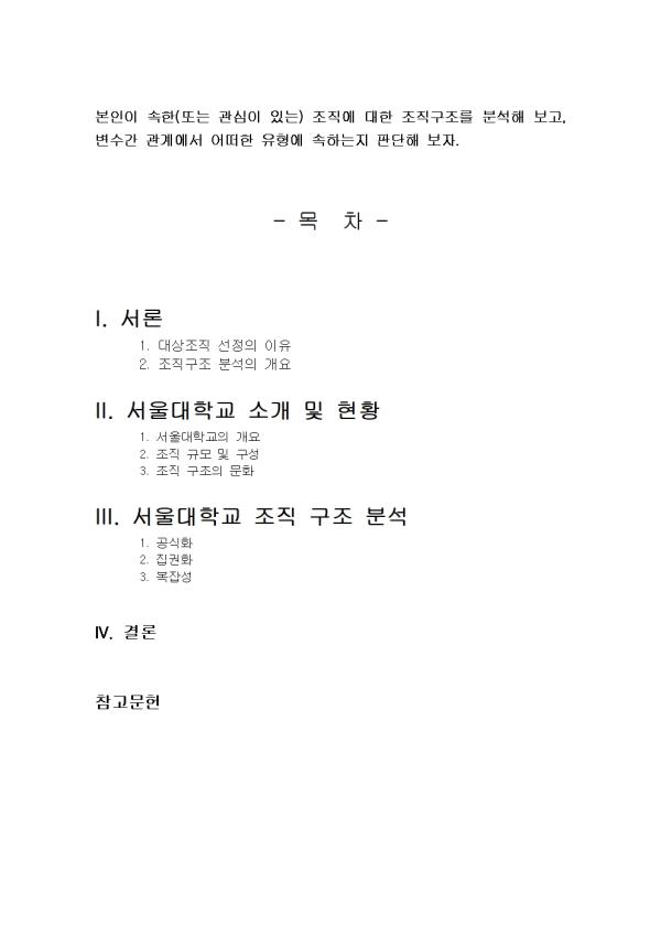 - ¸ñ Â÷ - I. ¼·Ð 1. ´ë»óÁ¶Á÷ ¼±Á¤ÀÇ ÀÌÀ¯ 2. Á¶Á÷±¸Á¶ ºÐ¼®ÀÇ °³¿ä II. ¼¿ï´ëÇб³ ¼Ò°³ ¹× ÇöȲ 1. ¼¿ï´ëÇб³ÀÇ °³¿ä 2. Á¶Á÷ ±Ô¸ð ¹× ±¸¼º 3. Á¶Á÷ ±¸Á¶ÀÇ ¹®È III. ¼¿ï´ëÇб³ Á¶Á÷ ±¸Á¶ ºÐ¼® 1. °ø½ÄÈ 2. Áý±ÇÈ 3. º¹À⼺ IV. °á·Ð Âü°í¹®Çå ** ÇÔ²² Á¦°øµÇ´Â Âü°íÀÚ·áÆÄÀÏ ** 1. ¼·Ð Âü°í.hwp 2.¼·Ð Âü°í2.hwp 3. °á·Ð Âü°í.hwp 4. °á·Ð Âü°í2.hwp 5. ´ë»óÁ¶Á÷ ¼±Á¤ÀÇ ÀÌÀ¯.hwp 6. ¼¿ï´ëÇб³ °³¿ä¿Í Á¶Á÷ ±Ô¸ð ¹× Ư¼º.hwp 7. ¼¿ï´ëÇб³ ¹ýÀû ÁöÀ§¿Í ±¸Á¶ÀÇ Æ¯¼º.hwp 8. ¼¿ï´ëÇб³ ¹ýÀû ÁöÀ§¿Í ±¸Á¶ÀÇ Æ¯¼º2.hwp 9. ¼¿ï´ëÇб³ ¼Ò°³ ¹× ÇöȲ.hwp 10.¼¿ï´ëÇб³ Á¶Á÷ ±¸Á¶ ºÐ¼®.hwp 11. ¼¿ï´ëÇб³ Á¶Á÷ ±¸Á¶ ºÐ¼®2.hwp 12. ¼¿ï´ëÇб³ÀÇ °³¿ä.hwp 13. Á¶Á÷±¸Á¶ ºÐ¼®ÀÇ °³¿ä.hwp ¢ºÀÚ·á³»¿ë ¹Ì¸®º¸±â