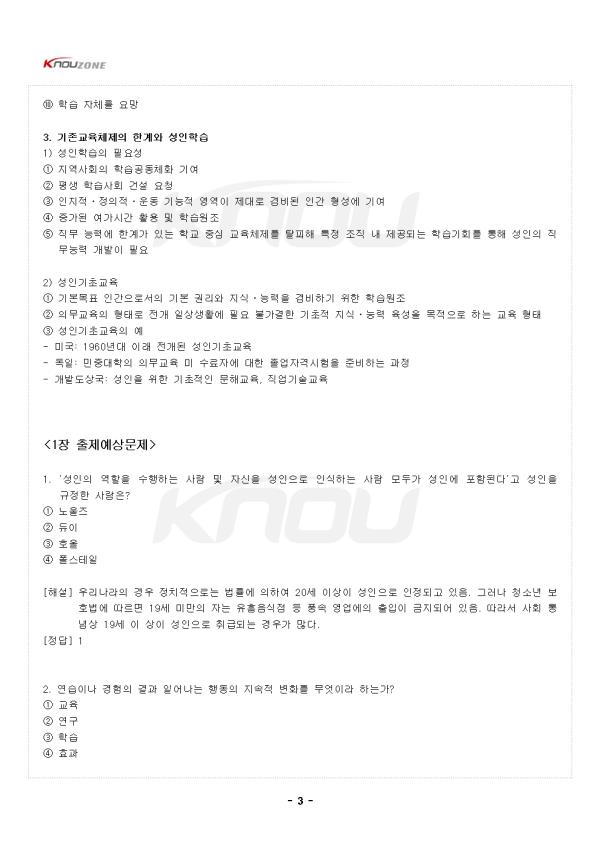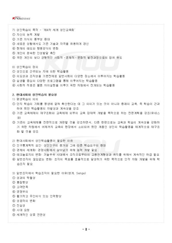 1. ¼ºÀÎÇнÀÀÇ °³³äÀû ÀÇÀÇ 1) ¼ºÀÎÀÇ °³³ä Á¤ÀÇ ¨ç ³ë¿ïÁî(knowles)ÀÇ ½É¸®ÇÐÀû¤ý»çȸÇÐÀû Á¤ÀÇ: ¼ºÀÎÀÇ ¿ªÇÒÀ» ¼öÇàÇÏ´Â »ç¶÷ ¹× ÀÚ½ÅÀ» ¼ºÀÎÀ¸·Î ÀνÄÇÏ´Â »ç¶÷ ¸ðµÎ°¡ ¼ºÀο¡ Æ÷ÇÔ ¨è ÀϹÝÀû Á¤ÀÇ: »çȸÀûÀ¸·Î »ý»êÀûÀÎ ÀÏÀ» ¼öÇàÇϰí ÀÚ½ÅÀÇ »î¿¡ ´ëÇØ ±âº»ÀûÀΠåÀÓÀ» Áö´Ñ ÀÚ 2) ÇнÀÀÇ °³³ä Á¤ÀÇ ¨ç ¼ºÀÎÀÌ °è¼ÓÀûÀ¸·Î ¹ß´ÞÇϴµ¥ ÀÖ¾î¼ °¡Àå Áß¿äÇÑ ¿ä¼ö´Â ÇнÀ ¨è ÇൿÀÇ º¯È: ±³À°ÇÐÀûÀÎ °ßÇØ·Î´Â ¹Ù¶÷Á÷ÇÑ, Áøº¸ÀûÀÎ ÇൿÀÇ º¯È¸¸À» ÇнÀÀ¸·Î °£ÁÖ ¨é °æÇè, ÈÆ·Ã, ¿¬½À: ÇൿÀÇ º¯È´Â °æÇèÀ̳ª ÈÆ·Ã ¶Ç´Â ¿¬½À¿¡ ÀÇÇØ ³ªÅ¸³ª´Â °Í ¨ê Áö¼ÓÀûÀÎ È¿°ú: º¯ÈµÈ ÇൿÀ» ÇнÀÀ¸·Î °£ÁÖÇϱâ À§Çؼ´Â ±× È¿°ú°¡ ¿À·¡ Áö¼ÓµÇ¾î¾ß ÇÔ ¨ë ³»¸éÀû ÇൿÀÇ ½Àµæ, ¼öÁ¤: ¡®ÇൿÀÇ º¯È¡¯¿¡¼ ¡®Çൿ¡¯Àº ¿ÜÇüÀû Çൿ»Ó¸¸ ¾Æ´Ï¶ó °¡Ä¡, ½Å³ä, ŵµ µî°ú °°Àº ³»¸éÀû Çൿ±îÁöµµ Æ÷ÇÔµÊ. ¡®º¯È¡¯´Â ¾î¶² ÇൿÀÇ ½ÀµæÀ̳ª ¼öÁ¤À» ÀÇ¹Ì 3) ÇнÀÀÇ ÇüÅ ¨ç Çü½ÄÀû ÇнÀ: Çб³±³À° µî°ú °°ÀÌ Á¶Á÷ÀûÀ̰í ÀǵµÀûÀÎ °úÁ¤À» ÅëÇØ ÀÌ·ç¾îÁö´Â ÇнÀ ¨è ºñÇü½ÄÀû ÇнÀ: Çб³±³À° ÀÌ¿ÜÀÇ ¼ºÀα³À°±â°ü µîÀ» ÅëÇØ¼ ÀÌ·ç¾îÁö´Â ºñ±³Àû Á¶Á÷ÀûÀ̰í ÀǵµÀûÀÎ ÇнÀ ¨é ¹«Çü½ÄÀû ÇнÀ: ¿ì¹ßÀûÀÌ°í ºñÁ¶Á÷ÀûÀÌ¸ç ¸Å¿ì ªÀº ½Ã°£ ³»¿¡¼µµ ÀÌ·ç¾îÁú ¼ö ÀÖ´Â ÇнÀ 4) ¼ºÀÎÇнÀ¿¡ ´ëÇÑ °³³ä Á¤ÀÇ ¨ç ¸Þ¸®¾ö°ú ºê·ÎŶ(Merriam & Brockitt)ÀÇ Á¤ÀÇ: ±³¼ö-ÇнÀÀÇ ´ëÀÀ°ü°è¿¡ ÀÖ¾î ±³À°ÀÚ°¡ ¼öÇàÇÏ´Â ÀÏ¿¡ ´ëÀÀ ÇÏ´Â Ãø¸éÀ¸·Î ÇнÀÀÚÀÇ ³»ºÎ¿¡¼ ÀϾ´Â ÀÎÁöÀû °úÁ¤ ¨è ¸¶À̾î(Mayer)ÀÇ Á¤ÀÇ: ¿¬½À, ÈÆ·Ã °æÇèÀÇ °á°ú·Î ÀÎÇÏ¿© »çȸ¿¡¼ ¼ºÀÎÀ̶ó°í °£ÁֵǴ »ç¶÷µéÀÇ Áö½Ä, Å µµ, ±×¸®°í ÇൿÀÌ ºñ±³Àû Áö¼ÓÀûÀ¸·Î º¯ÈµÇ´Â °úÁ¤ 5) ¼ºÀÎÇнÀÀÇ Æ¯Â¡(¼ºÀÎÇнÀÀÌ Áö´Ï´Â ÀǹÌ) ¨ç ½Ç»ýȰ °¡¿îµ¥ ´ç¿¬ÇÏ°Ô µÇ´Â ÇöÀçÀÇ °úÁ¦¸¦ ÇØ°áÇÏ´Â °Í¿¡ ÁßÁ¡À» µÎ´Â Ȱµ¿ ¨è ¼ºÀÎÇнÀÀº ÀǵµÀûÀÎ ¾î¶°ÇÑ ÇൿÀÇ °á°ú¸¦ ÀÌ·ç¾îÁö°Ô ÇÏ´Â ÇнÀ Çൿ¾ÈÀ» ´ë»óÀ¸·Î ÇÔ ¨é ¼ºÀÎÇнÀÀº Àΰ£ÀÇ Á¦¹Ý ¿å±¸¸¦ ½ÇÇö½ÃŰ´Â µ¿½Ã¿¡ Áö¼ÓÀûÀÎ ¼ºÀå¿¡ ±â¿© °¡´É - Áß·« - |