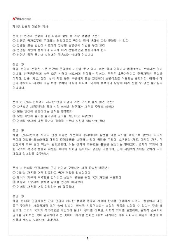 ¹®Á¦ 1. ÀαÇÀÇ º»Áú¿¡ ´ëÇÑ ´ÙÀ½ÀÇ ¼³¸í Áß °¡Àå ÀûÀýÇÑ °ÍÀº? ¨ç ÀαÇÀº ±¹°¡·ÎºÎÅÍ ºÎ¿©µÇ´Â ±Ç¸®À̹ǷΠ±¹°¡ÀÇ Á¤Ã¥ º¯È¿¡ µû¶ó ´Þ¶óÁú ¼ö ÀÖ´Ù ¨è ÀαÇÀº ¸ðµç Àΰ£ÀÌ ¼·Î¿¡°Ô ÀÎÁ¤ÇÑ Á¸¾ö¼º¿¡ ±â¹ÝÀ» µÎ°í ÀÖ´Ù ¨é ÀαÇÀº °³ÀÎÀÇ ´É·ÂÀ̳ª ÀÚ°Ý¿¡ µû¶ó ¼±º°ÀûÀ¸·Î º¸ÀåµÇ¾î¾ß ÇÑ´Ù ¨ê ÀαÇÀº ƯÁ¤ ±¹°¡³ª Áö¿ª¿¡¸¸ Àû¿ëµÇ´Â »ó´ëÀû ±Ç¸®ÀÌ´Ù Á¤´ä: ¨è ÇØ¼³: ÀαÇÀÇ º»ÁúÀº ¸ðµç Àΰ£ÀÇ Á¸¾ö¼º¿¡ ±â¹ÝÀ» µÎ°í ÀÖ´Ù. ÀÌ´Â ±¹°¡ ±Ç·ÂÀ̳ª ¹ý·ü·ÎºÎÅÍ ºÎ¿©µÇ´Â °ÍÀÌ ¾Æ´Ï¶ó, Àηù°øµ¿Ã¼¿¡ ¼ÓÇÑ ¸ðµç »ç¶÷ÀÌ ¼·Î¿¡°Ô ÀÎÁ¤ÇÏ´Â °ÍÀÌ´Ù. ÀαÇÀº Ãʱ¹°¡ÀûÀ̰í Å»±¹°¡ÀûÀΠƯ¼ºÀ» °¡Áö¸ç, ÀÎÁ¾, °è±Þ, Á¨´õ, ¼ºÀû ÁöÇâ µî°ú ¹«°üÇÏ°Ô ¸ðµç Àΰ£¿¡°Ô º¸ÆíÀûÀ¸·Î Àû¿ëµÇ´Â ±Ç¸®ÀÌ´Ù. µû¶ó¼ °³ÀÎÀÇ ´É·ÂÀ̳ª ÀÚ°Ý¿¡ µû¸¥ Â÷µî ºÎ¿©ÀÇ ´ë»óÀÌ ¾Æ´Ï¸ç, ±¹°¡ÀÇ Á¤Ã¥À̳ª »óȲ¿¡ µû¶ó º¯ÇÒ ¼ö ¾ø´Â ºÒ°¡Ä§ÀÇ ±Ç¸®ÀÌ´Ù. ¹®Á¦ 2. ±Ù´ë½Ã¹ÎÇõ¸íÀÌ Á¦½ÃÇÑ À뱂 À̳äÀÇ ±âº» ±¸Á¶·Î ¿ÇÁö ¾ÊÀº °ÍÀº? ¨ç ÀÚÀ¯·Î¿î ½ÃÀå°æÀïÀ» ÅëÇØ »çÀû ÀÌÀÍÀ» Ãß±¸ÇÏ´Â °³ÀÎÀ» ÁÖü·Î »ï¾Ò´Ù ¨è ¸ðµç Àΰ£ÀÌ ÆòµîÇÏ´Ù´Â ¿øÄ¢À» õ¸íÇß´Ù ¨é ¸ðµç °³ÀÎÀÌ ºÒ°¡Ä§¡¤ºÒ°¡¾çÀÇ ±Ç¸®¸¦ °¡Áø´Ù°í ÁÖÀåÇß´Ù ¨ê °æÁ¦Àû ¾àÀÚ¿¡ ´ëÇÑ ±¹°¡ÀÇ Àû±ØÀû º¸È£¿Í Áö¿øÀ» ÇÙ½ÉÀ¸·Î Çß´Ù Á¤´ä: ¨ê ÇØ¼³: ±Ù´ë½Ã¹ÎÇõ¸í ½Ã±âÀÇ À뱂 À̳äÀº ÀÚº»ÁÖÀÇ °æÁ¦Ã¼Á¦ÀÇ ¹ßÀüÀ» À§ÇÑ ÀÚÀ¯¸¦ ÁÖÃàÀ¸·Î »ï¾Ò´Ù. µû¶ó¼ ±¹°¡ÀÇ °³ÀÔÀ» ÃÖ¼ÒÈÇÏ°í °³ÀÎÀÇ °æÁ¦È°µ¿À» º¸ÀåÇÏ´Â °Í¿¡ ÁßÁ¡À» µÎ¾ú´Ù. ¼ÒÀ¯±ÇÀÇ ÀÚÀ¯, °è¾àÀÇ ÀÚÀ¯, Á÷¾÷¼±ÅÃÀÇ ÀÚÀ¯ µîÀÌ ÇÙ½ÉÀû ±Ç¸®¿´À¸¸ç, ÀÌ´Â °ÀÚÀÇ ÀÚÀ¯·Î¿î Ȱµ¿À» º¸ÀåÇÏ´Â ÇüÅ¿´´Ù. °æÁ¦Àû ¾àÀÚ¿¡ ´ëÇÑ ±¹°¡ÀÇ Àû±ØÀû º¸È£¿Í Áö¿øÀº ÈÄ´ëÀÇ »çȸ±Ç ³íÀÇ¿¡¼ °Á¶µÈ ³»¿ëÀ̸ç, ±Ù´ë ½Ã¹ÎÇõ¸í±â¿¡´Â ¿ÀÈ÷·Á ±¹°¡ °³ÀÔÀÇ ÃÖ¼Òȸ¦ Ãß±¸Çß´Ù. - Áß·« - |