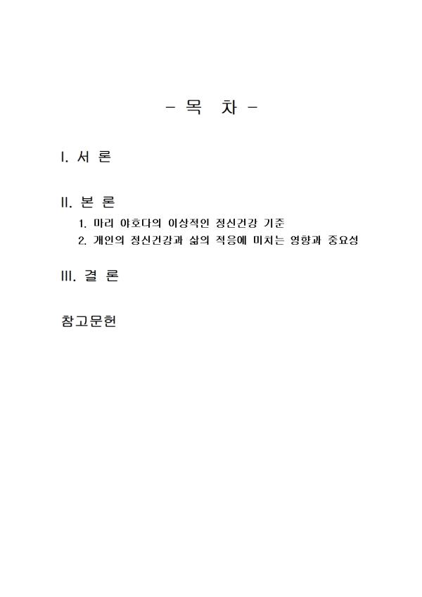 2. ¸¶¸® ¾ßÈ£´Ù°¡ Á¦½ÃÇÑ °¢ ±âÁØÀÌ °³ÀÎÀÇ Á¤½Å°Ç°°ú »îÀÇ ÀûÀÀ¿¡ ¹ÌÄ¡´Â ¿µÇâ°ú Á߿伺¿¡ ´ëÇØ ÀÚ½ÅÀÇ °ßÇØ¸¦ ¼¼úÇϽÿÀ. - ¸ñ Â÷ - I. ¼ ·Ð II. º» ·Ð 1. ¸¶¸® ¾ßÈ£´ÙÀÇ ÀÌ»óÀûÀÎ Á¤½Å°Ç° ±âÁØ 2. °³ÀÎÀÇ Á¤½Å°Ç°°ú »îÀÇ ÀûÀÀ¿¡ ¹ÌÄ¡´Â ¿µÇâ°ú Á߿伺 III. °á ·Ð Âü°í¹®Çå ** ÇÔ²² Á¦°øµÇ´Â Âü°íÀÚ·á ÇÑ±ÛÆÄÀÏ ** 1. °¢ ±âÁØÀÌ °³ÀÎÀÇ Á¤½Å°Ç°°ú »îÀÇ ÀûÀÀ¿¡ ¹ÌÄ¡´Â ¿µÇâ°ú Á߿伺.hwp 2. °¢ ±âÁØÀÌ °³ÀÎÀÇ Á¤½Å°Ç°°ú »îÀÇ ÀûÀÀ¿¡ ¹ÌÄ¡´Â ¿µÇâ°ú Á߿伺2.hwp 3. °¢ ±âÁØÀÌ °³ÀÎÀÇ Á¤½Å°Ç°°ú »îÀÇ ÀûÀÀ¿¡ ¹ÌÄ¡´Â ¿µÇâ°ú Á߿伺3.hwp 4. °¢ ±âÁØÀÌ °³ÀÎÀÇ Á¤½Å°Ç°°ú »îÀÇ ÀûÀÀ¿¡ ¹ÌÄ¡´Â ¿µÇâ°ú Á߿伺4.hwp 5. ÀÌ»óÀûÀÎ Á¤½Å°Ç°ÀÇ ¿©¼¸ °¡Áö ±âÁØ.hwp 6. ÀÌ»óÀûÀÎ Á¤½Å°Ç°ÀÇ ¿©¼¸ °¡Áö ±âÁØ2.hwp 7. ¼·Ð ÀÛ¼º½Ã ÂüÁ¶.hwp 8. °á·Ð ÀÛ¼º½Ã ÂüÁ¶.hwp 9. ¼·Ð ÀÛ¼º½Ã ÂüÁ¶2.hwp 10. °á·Ð ÀÛ¼º½Ã ÂüÁ¶2.hwp ¢ºÀÚ·á³»¿ë ¹Ì¸®º¸±â
