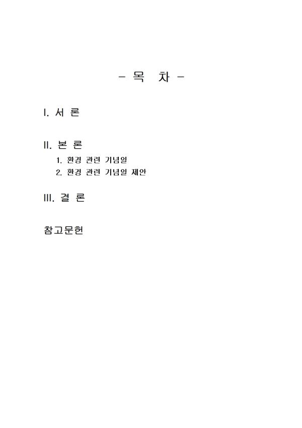 - ¸ñ Â÷ - I. ¼ ·Ð II. º» ·Ð 1. ȯ°æ °ü·Ã ±â³äÀÏ 2. ȯ°æ °ü·Ã ±â³äÀÏ Á¦¾È III. °á ·Ð Âü°í¹®Çå ** ÇÔ²² Á¦°øµÇ´Â Âü°íÀÚ·á ÇÑ±ÛÆÄÀÏ ** 1. ±³Àç¿¡ Á¦½ÃµÇÁö ¾ÊÀº ȯ°æ °ü·Ã ±â³äÀÏ.hwp 2. »õ·Ó°Ô Á¦¾ÈÇϴ ȯ°æ ±â³äÀÏ.hwp 3. »õ·Ó°Ô Á¦¾ÈÇϴ ȯ°æ ±â³äÀÏ2.hwp 4. »õ·Ó°Ô Á¦¾ÈÇϴ ȯ°æ ±â³äÀÏ3.hwp 5. ¼·Ð ÀÛ¼º½Ã ÂüÁ¶.hwp 6. °á·Ð ÀÛ¼º½Ã ÂüÁ¶.hwp 7. ¼·Ð ÀÛ¼º½Ã ÂüÁ¶2.hwp 8. °á·Ð ÀÛ¼º½Ã ÂüÁ¶2.hwp ¢ºÀÚ·á³»¿ë ¹Ì¸®º¸±â