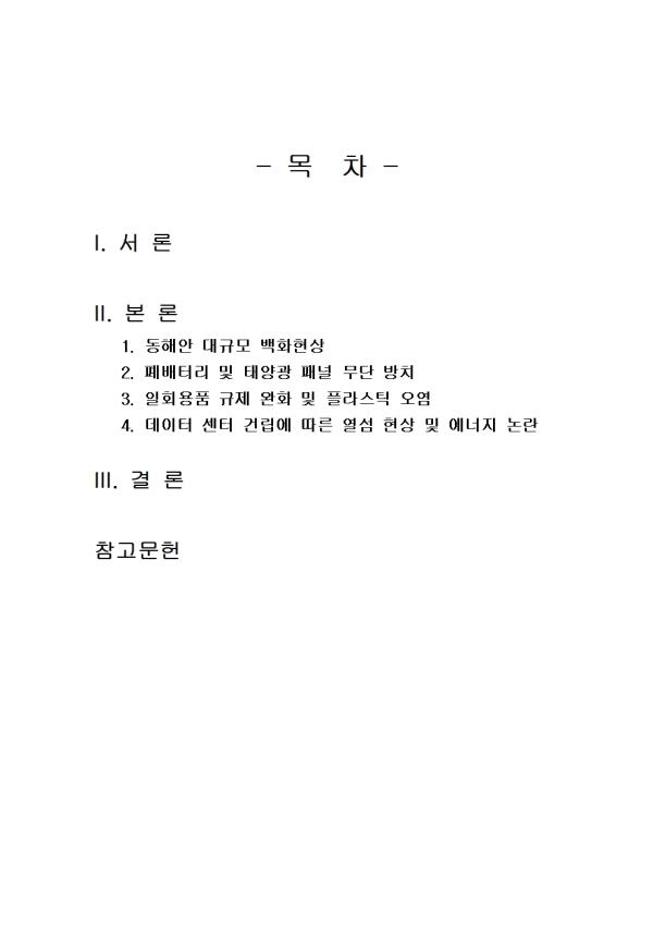 ȯ°æ ¿À¿°Àº Àΰ£ Ȱµ¿(»ê¾÷, ±³Åë, ¼Òºñ µî)À¸·Î ¹èÃâµÇ´Â ¿À¿°¹°ÁúÀÌ ´ë±â, ¼öÁú, Åä¾ç, ÇØ¾ç ȯ°æÀ» ÈѼÕÇÏ¿© »ýŰè¿Í ÀηùÀÇ °Ç°­¡¤»ýÁ¸¿¡ Àå¾Ö¸¦ ÁÖ´Â Çö»óÀÌ´Ù. Áö±¸ ¿Â³­È­, ¹Ì¼¼ ÇÃ¶ó½ºÆ½, ÀÌ»ó±âÈÄ µî ½É°¢ÇÑ °á°ú¸¦ ÃÊ·¡ÇÑ´Ù. µ¿ÇؾÈÀÇ ´ë±Ô¸ð ¹éÈ­Çö»óÀº Áö³­ 20³â°£ ÇØ¾ç »ýŰ迡 ½É°¢ÇÑ ¿µÇâÀ» ¹ÌÃÆ´Ù. ¹éÈ­Çö»óÀº »êÈ£³ª ¾Ï¹Ý¿¡ ºÙ¾î »ý¹°µéÀÌ ¼­½ÄÇÏ´ø ÇØÁ¶·ù³ª À̳¢ µîÀÌ »ç¶óÁö°í, ¹ÙÀ§°¡ Èò»öÀ¸·Î º¯ÇÏ´Â Çö»óÀ» ÀÏÄ´´Ù. ÀÌ·¯ÇÑ Çö»óÀº ÇØ¾ç »ý¹°µéÀÇ ¼­½ÄÁö¸¦ ÆÄ±«Çϰí, Á¾´Ù¾ç¼ºÀ» ÁÙÀ̸ç, ¾î¾÷ »ý»ê¼º±îÁö ¾Ç¿µÇâÀ» ¹ÌÄ¡´Â ¿øÀÎÀ¸·Î Áö¸ñµÇ°í ÀÖ´Ù.