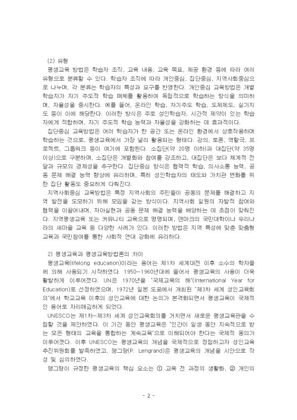 2) Æò»ý±³À°°ú Æò»ý±³À°¹æ¹ý·ÐÀÇ Â÷ÀÌ