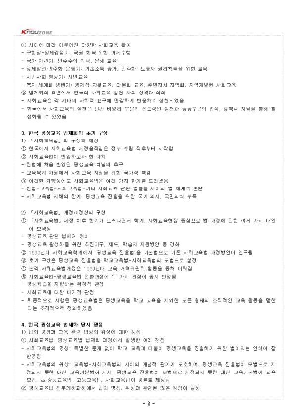 1. Çѱ¹ÀÇ Æò»ý ±³À°Àû ¼±(à») »çÀ¯ 1) »çȸ±³À° ¹× Æò»ý±³À°ÀÇ °³³ä°ú ¿ø¸®¿¡ ´ëÇÑ »çÀ¯ ¨ç »çȸ±³À° °³³äÀ» º»°ÝÀûÀ¸·Î »ç¿ëÇϱ⠽ÃÀÛÇÑ ±¸ÇѸ» ÀÌÈÄ Çѱ¹ÀÇ »çȸ ±³À°½Çõ°¡µéÀº Æò¹Î ÁöÇâÀû, °øµ¿Ã¼ ÁöÇâÀû, »çȸ º¯È ÁöÇâÀû »çȸ±³À° ¿ø¸® ±¸ÇöÀ» À§ÇØ ³ë·ÂÇßÀ½ ¨è Çѱ¹ÀÇ »çȸ±³À°½Çõ°¡µéÀÌ ÁÖÀåÇß´ø »çȸ±³À°, Æò»ý±³À° ¿ø¸® - »çȸ±³À°½Çõ°¡µéÀº »çȸ±³À°-Æò»ý±³À° °³³ä °£ °ü°è¸¦ À¯±âÀûÀ¸·Î Àß Á¤¸³ÇÔ - »çȸ±³À°»ç»ó°¡µéÀº ´ëü·Î »çȸ±³À°À» ÅëÇÑ »çȸ¹®Á¦ ÇØ°á°ú »çȸ º¯È °¡´É¼º¿¡ ºñÆÇÀû ³«°ü·Ð ÀÔÀåÀ» ÇÇ·ÂÇÔ - »çȸ±³À°»ç»ó°¡µéÀº ±³À°´ë»ó°ú ±³À°³»¿ë ¸é¿¡¼ ±³À° ÆòµîÀ» Áß½ÃÇÔ - »çȸ±³À°»ç»ó°¡µéÀº ÇнÀÀÚÀÚ Á¸ÁßÀ» ¸Å¿ì Áß½ÃÇÔ - »çȸ±³À°»ç»ó°¡µéÀº ±³À°°úÁ¤¿¡¼ °øµ¿Ã¼Àû ÇнÀÀ» °Á¶ÇÔ 2) »çȸ±³À° Á¦µµÈ¸¦ À§ÇÑ »çȸ±³À°»ç»óÀÇ ½Ã»çÁ¡ ¨ç »çȸ±³À°»ç»ó°¡µéÀº ´ëü·Î »çȸ±³À°, Æò»ý±³À° Á¦µµÈ Çʿ伺¿¡ ºñÆÇÀû ¼ö¿ëÀÇ ÀÔÀåÀ» ÃëÇßÀ½ - »çȸ±³À° Á¦µµÈ¸¦ À§ÇÑ ±¹°¡ÀÇ ¿ªÇÒ °È - Á¦µµÈ °úÁ¤¿¡¼ÀÇ ±¹°¡±Ç·Â°ú ÀÚº»ÀÇ À§Çù¿¡ ´ëÇÑ °æ°è - °øÀͼº°ú ÇüÆò¼º¿¡ ÀÔ°¢ÇÑ »çȸ±³À° ¹ýÁ¦È ±¸Çö ¨è Çѱ¹ »çȸ±³À°½Çõ°¡µéÀº °øÅëÀûÀ¸·Î ¶Ñ·ÇÇÑ »çȸ ±³À°Àû °¡Ä¡°üÀ» °®°í ¹ÎÁß, ÁÖ¹Î, ºó¹Î, ½Ã¹Î µîÀ¸·Î Ç¥ÇöµÇ´Â Æò¹üÇÑ »ç¶÷µé°ú ÇÔ²²ÇÏ¸ç ±×µéÀÇ ÇູÀ» À§ÇØ ³ë·ÂÇÏ¿´À½ 2. Çѱ¹ÀÇ Æò»ý ±³À°Àû ½Çõ 1) Çѱ¹ »çȸ±³À°»çÀÇ ½Ã´ë±¸ºÐ°ú ½Ã´ëº° ½Çõ Ȱµ¿ ¨ç »çȸ±³À°ÀÇ ÀϹÝÀû ¹ß´Þ´Ü°è´Â »çȸ±³À°ÀÇ À§»ó, ±â´É¿¡ µû¶ó ºÐ·ù - (Çб³ ±³À° ÀÌÀüÀÇ »î ¼ÓÀÇ) ¿øÇüÀû »ýȰ Á᫐ »çȸ±³À° ½Ã±â - (Çб³ ±³À° Âü¿©±âȸ¸¦ ¾òÁö ¸øÇÑ °èÃþÀ» À§ÇÑ) ¼Ò¿Ü°èÃþ Á᫐ »çȸ±³À° ½Ã±â - (Çб³ ±³À°À» ÃÊ¿ùÇÑ Æò»ýÇнÀ Â÷¿ø¿¡¼) Çö´ëÀû »ýȰ Á᫐ »çȸ±³À° ½Ã±â·Î ±¸ºÐµÊ ¨è Çѱ¹»çÀÇ ÀϹÝÀû ½Ã´ë±¸ºÐ - °í´ë»çȸ-Á¶¼± ½Ã´ëÀÇ ÀϹÝÀûÀÎ ½Ã´ë - ±Ù´ë ÀÌÈÄ ±¸ÇѸ» °³È±â - ÀÏÁ¦°Á¡±â-±¹°¡ Àç°Ç±â(1945~1960) - °æÁ¦¹ßÀü¡¤¹ÎÁÖÈ ¿îµ¿±â(1961~1987) - ½Ã¹Î»çȸ Çü¼º±â(1988~1977) - º¹Áö¡¤¼¼°èÈ º´Çà±â(1998~ÇöÀç) ¨é Á¾ÇÕÀûÀ¸·Î - ¿øÇüÀû »ýȰ Á᫐ »çȸ±³À° ½Ã±â: °í´ë»çȸ-°³È±â Àü ±Ù´ëÀû ÀǹÌÀÇ Çб³ ±³À° º¸±Þ Àü - ¼Ò¿Ü°èÃþ Á᫐ »çȸ±³À° ½Ã±â: ±¸ÇѸ» °³È±â-ÀÏÁ¦°Á¡±â-±¹°¡ Àç°Ç±â-°æÁ¦¹ßÀü, ¹ÎÁÖÈ ¿îµ¿±â ½Ã´ë - °íµî±³À° Á᫐ »çȸ±³À° ½Ã±â: ½Ã¹Î»çȸ Çü¼º±â - Çö´ëÀû »ýȰ Á᫐ »çȸ±³À° ½Ã±â: º¹Áö, ¼¼°èÈ º´Çà±â - Áß·« - |