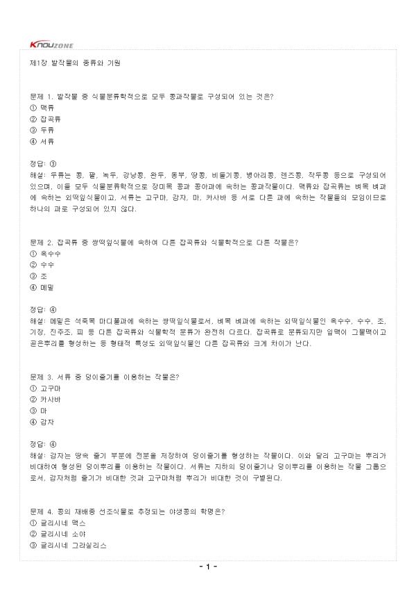 ¹®Á¦ 1. ¹çÀÛ¹° Áß ½Ä¹°ºÐ·ùÇÐÀûÀ¸·Î ¸ðµÎ Äá°úÀÛ¹°·Î ±¸¼ºµÇ¾î ÀÖ´Â °ÍÀº?